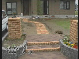アプローチも自作のため、レンガを買い込む。普通サイズが60枚・ダブルサイズが90枚だが、軽トラックを借りての運搬だけで疲れ切ってしまい、この後の作業は全て嫁さんに任せる。 「アプローチのレンガ貼りを楽しみにしていた。」と言うだけあって、あっと言う間に作り上げてしまった。