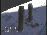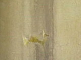 基礎と鉄骨の接合部分も取り敢えず全部つながっているし、「まずまず、問題なしか。基礎工事もしっかりしていたし、やはり素人目でも判る欠陥/手抜き工事は他人事か。」と思っていたところ、軽めの問題発見。外壁についている断熱材に5〜10cmの穴が。1カ所、2カ所、...計6箇所。