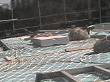 会社帰りに現場へ寄ってみると、暗くてよく分からなかったが、断熱材の穴はそのままである。また、ALCも相変わらず、雨ざらし。断熱材を触った感じでは濡れている感じはしなかったがどうなることやら。