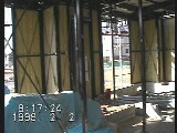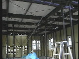この後、作業が行われている2Fへ登る事に。2Fには予想以上に資材が運び込まれ、あまりスペースがない状態。このような状態で、かつ、風も強い中で鉄骨を組んで行くところは、まさに『職人芸』といったところである。