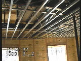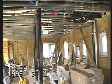 室内の方は天井に鋼製の?が張りめぐらされ、その間に電気配線がひかれていた。天井の方は、1Fの場合この上に9cmの断熱材(カタログでは吸音材となっているが)が2枚、2Fでは約20cmの断熱材が入るという事である。断熱材だらけで「もう勘弁して」という位の量である。今住んでいる家(木造)のように天井裏にものを隠すという事は「無理でしょうね」という事である。