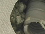 大工)佐々木さんのいなくなった部屋で呆然としていた所、天井に見慣れぬ穴を発見。そういえば私の嫁さんが、「見知らぬ業者さんから『今日は換気口の蓋を付けに来ました。』と挨拶された」と言っていた。良く見ると、24時間換気のホースが出ている穴もあるので、これはどうやら換気の穴らしい。現場監督)坂田さんからもらった換気経路の図面を見ていて「各部屋の換気はどうするのか?」と疑問に思っていたのだが、どうやら換気の穴が天井に付くようである。(と言う事は見知らぬ業者さんとは換気システムをやっている礼儀正しいあの人か?)