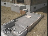 駐車場の方は予想通りインターロッキングを敷く準備をしているところ。アプローチへの階段も同様に作業中....と、思いきや、門柱に使うはずのレンガが階段部分に使われているではないか。聞いてみるにも職人さんは昼寝中だし、何か妙案でもあってこうしているのかもしれないし。でも、この先大丈夫なのだろうか。