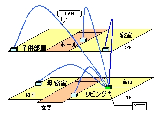 当初は『CD管を全部屋に埋め込み、LANを通すのは後から』と考えていたが、「CD管の埋設は不可能(積水ハウス)」という話があったため、以下の様な無駄が多い構成となった。